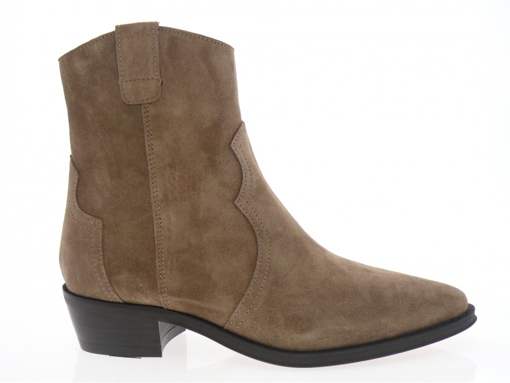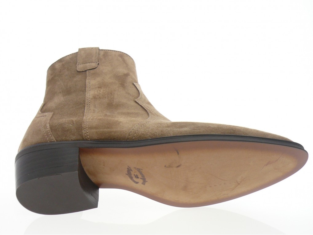 Boots tiague à talon dessus cuir daim taupe ou camel zip intérieur