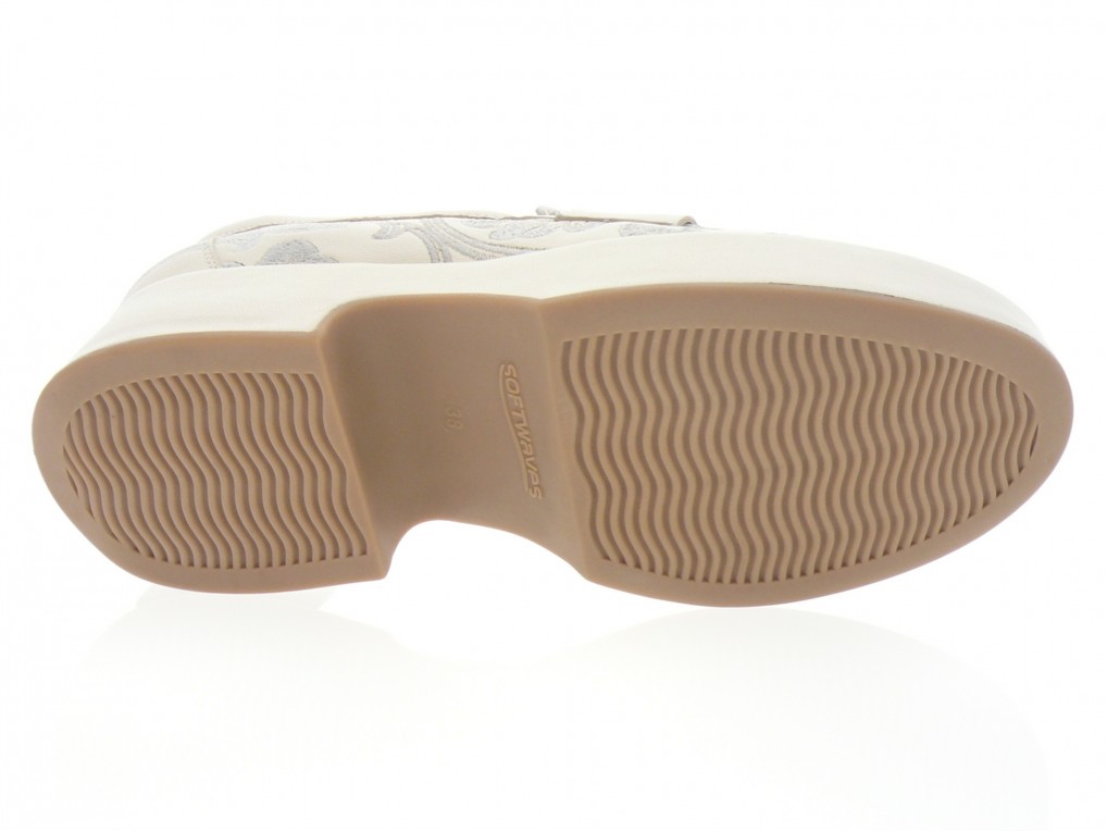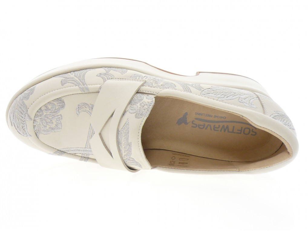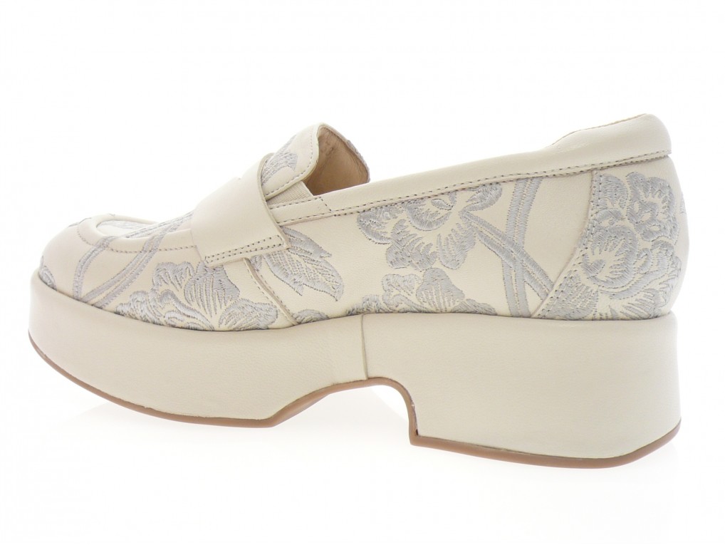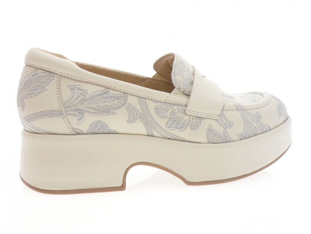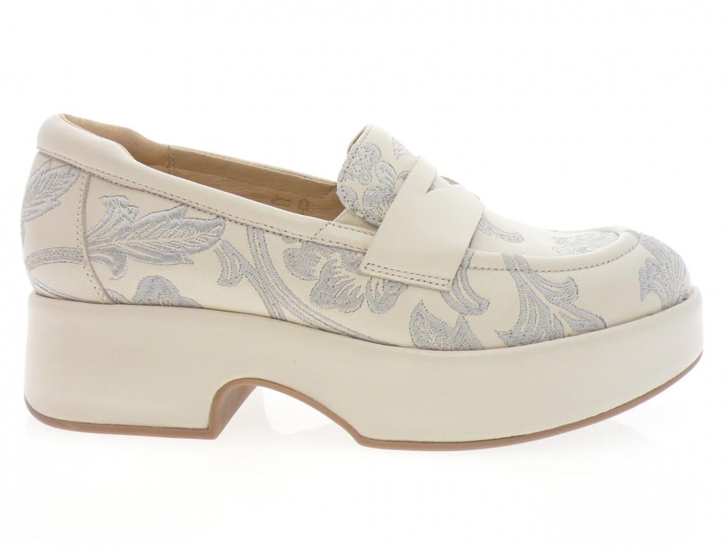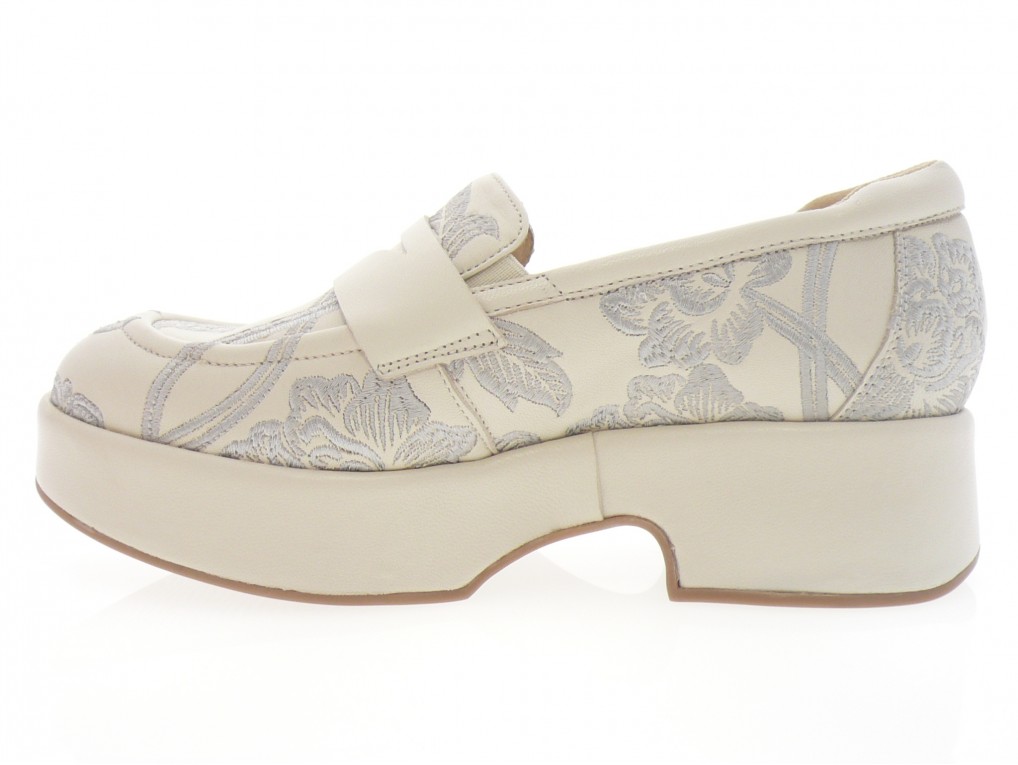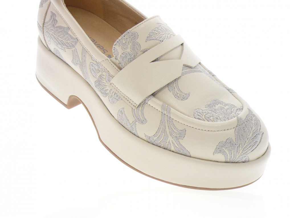 Mocassin compensé dessus cuir imprimé écru ou cuir nubuck ciel imprimé
