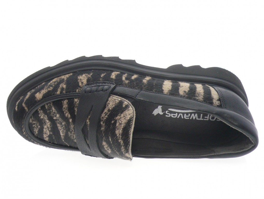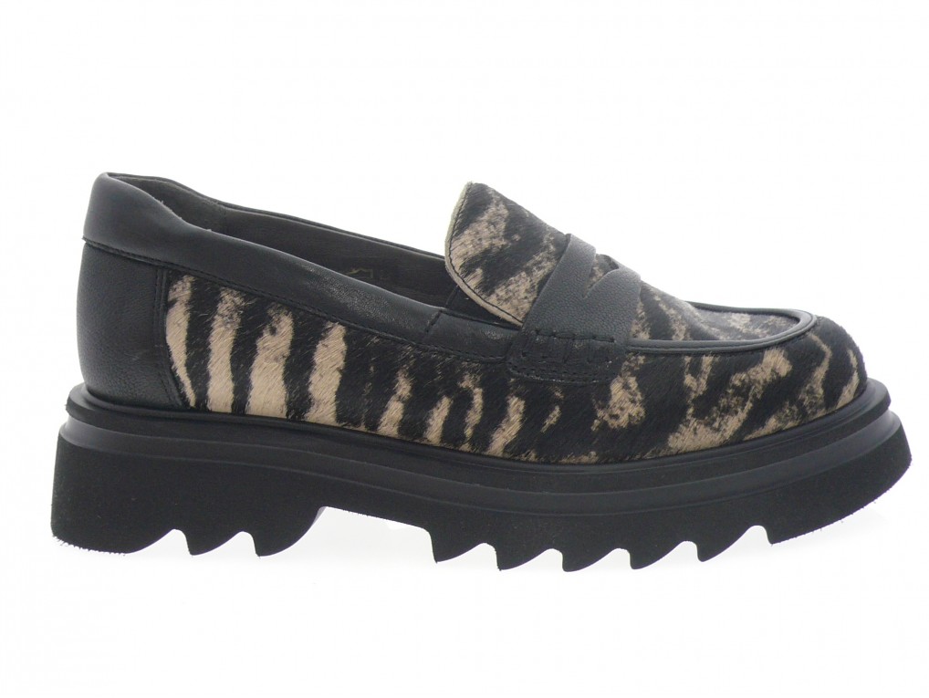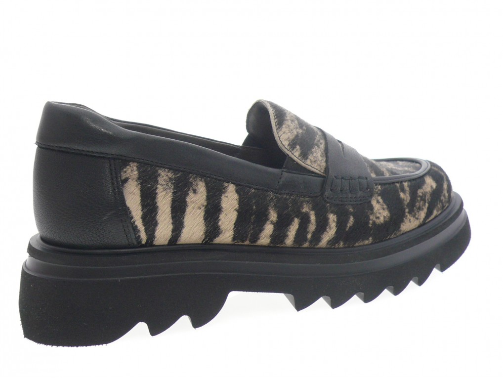 Mocassin compensé dessus cuir imprimé zébre