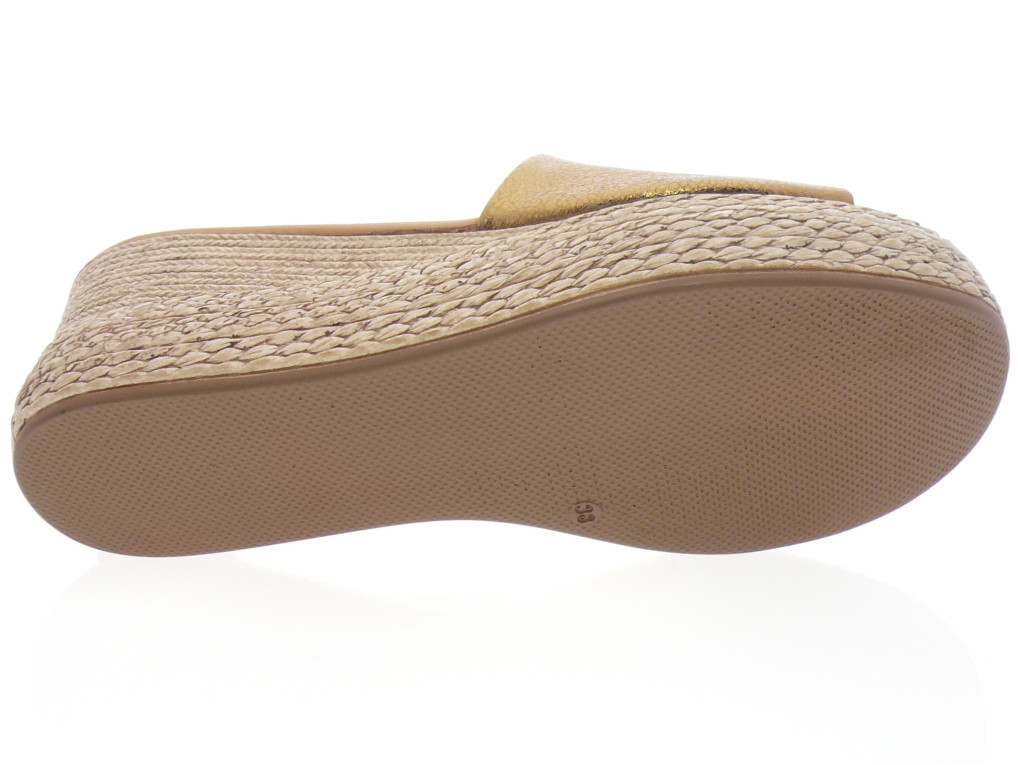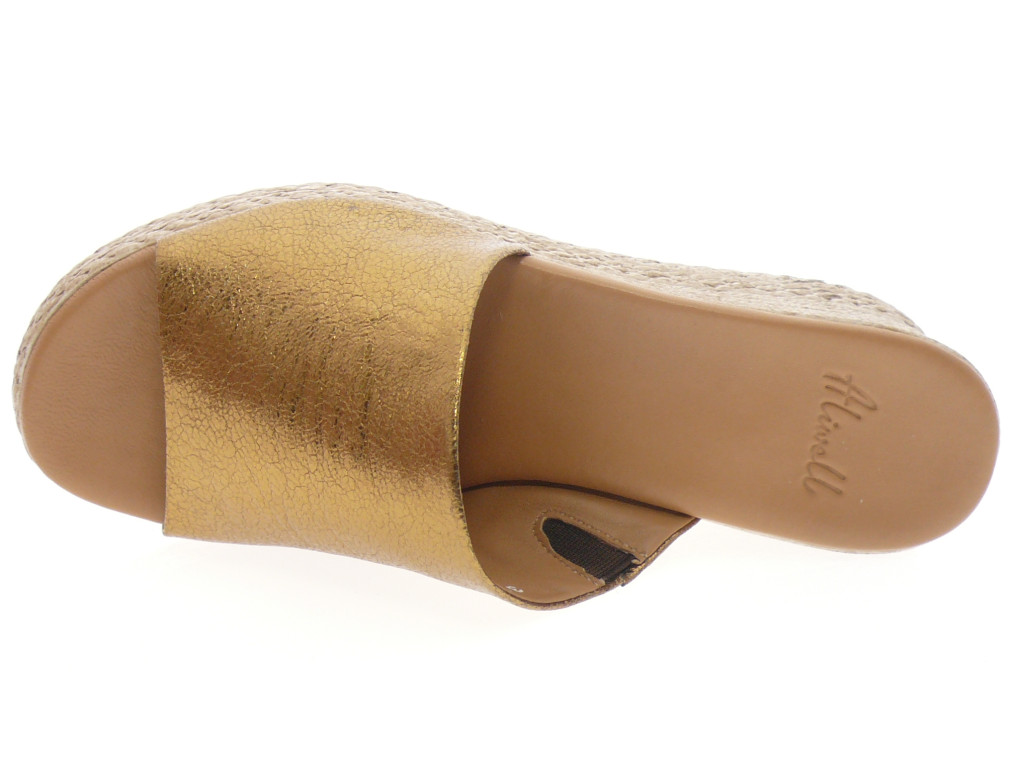 Mule compensée dessus cuir bronze ou cuir daim beige