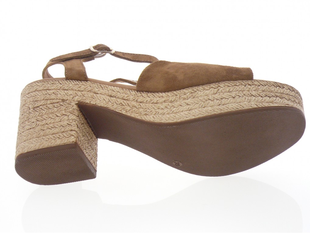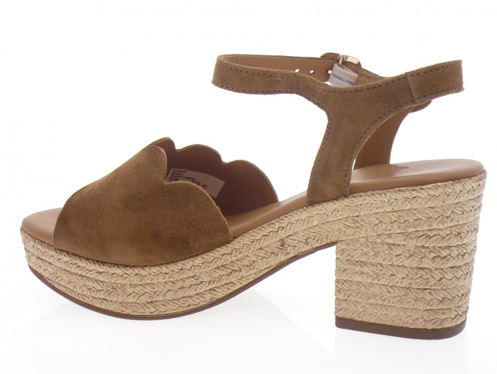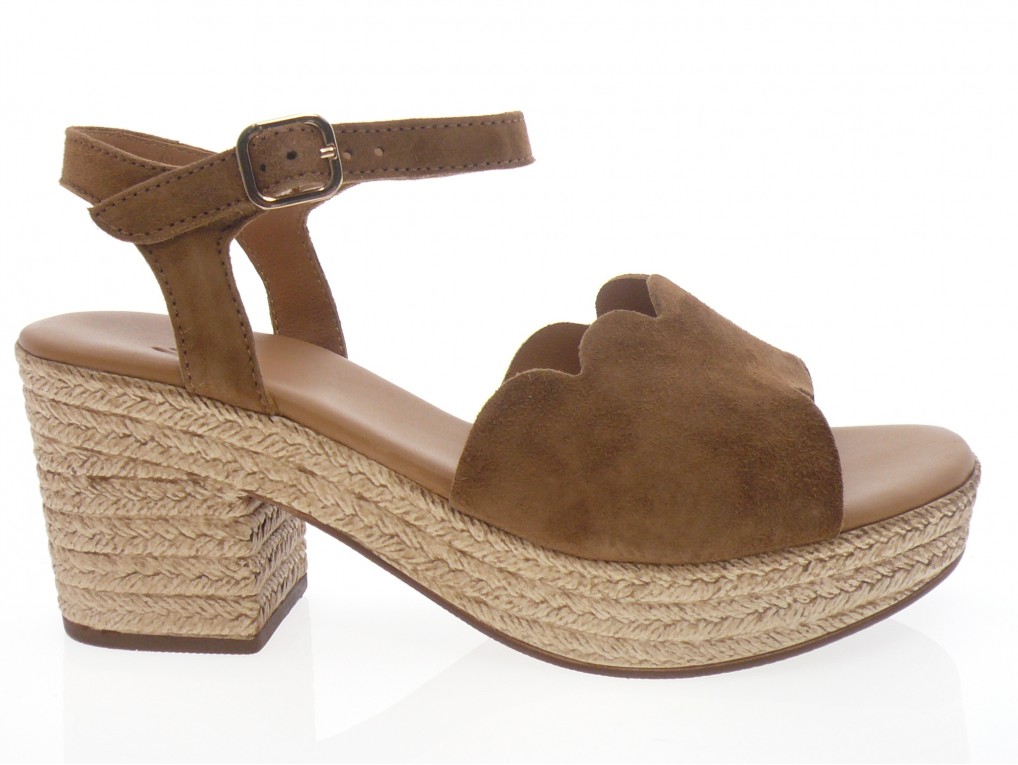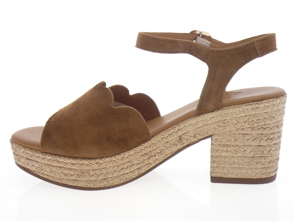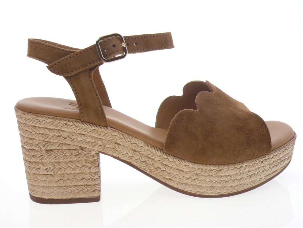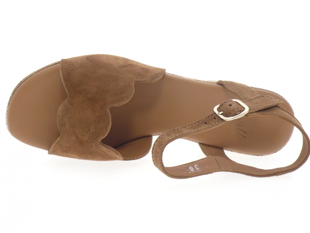 Nu pied compensé dessus cuir nubuck beige ou cognac