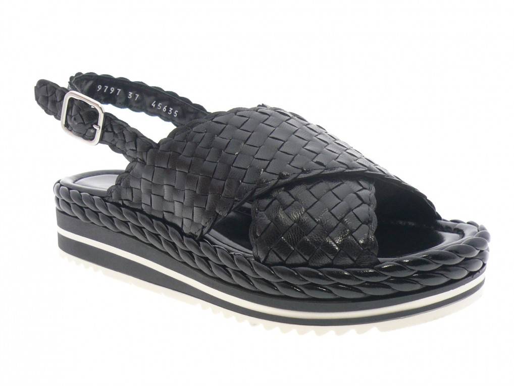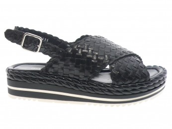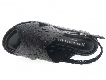 Nu pied compensé dessus cuir tressé main