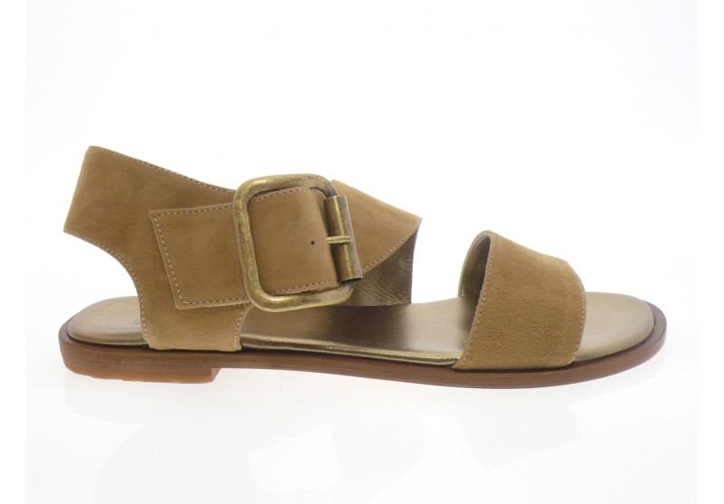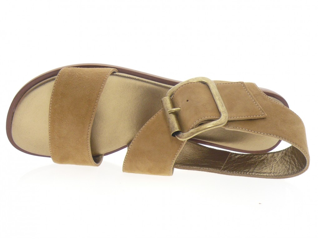 Nu pieds dessus cuir daim camel