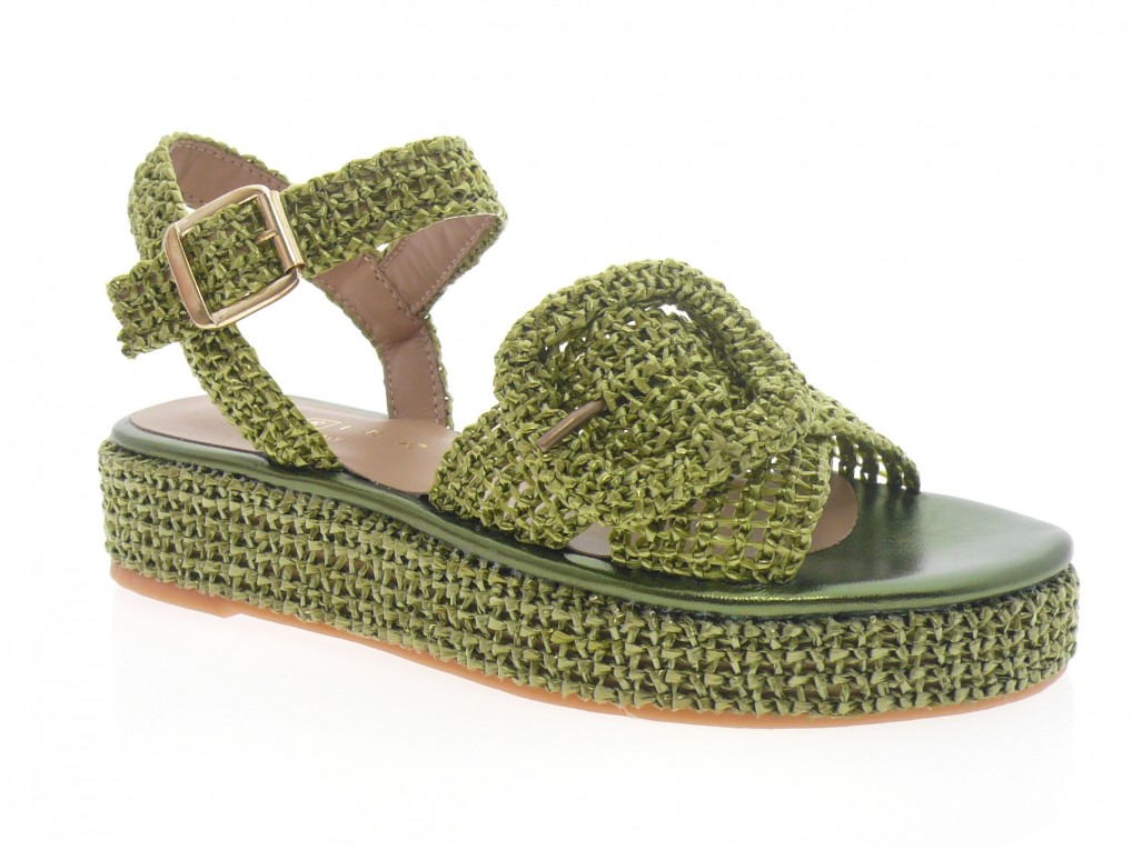 nu pied compensé dessus raffia vert métalisè
