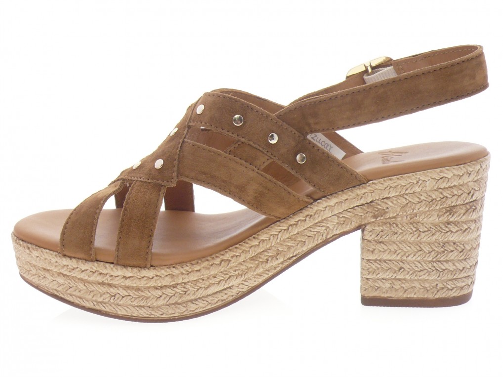 Nu pieds compensé dessus cuir daim marron clair