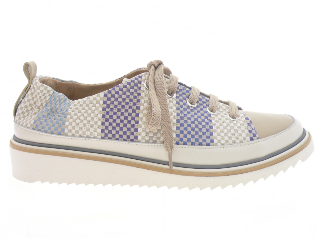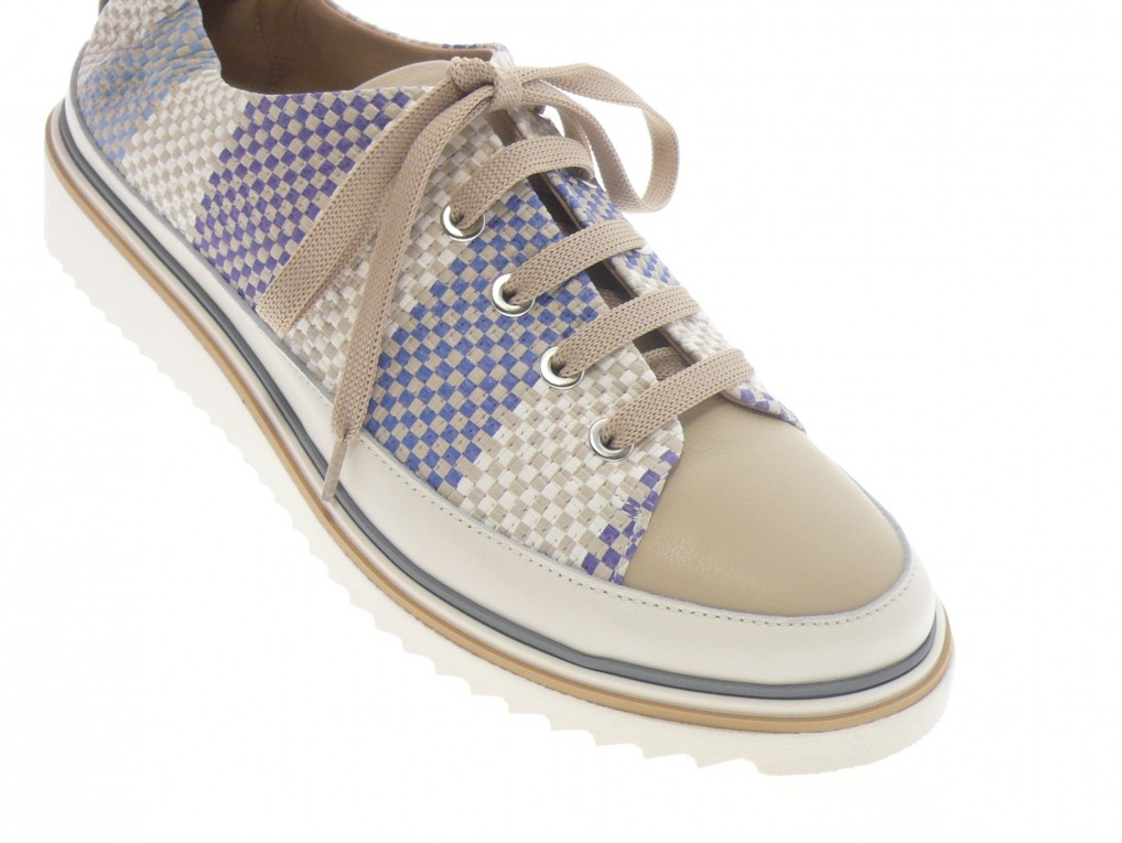 Tennis sport chic dessus cuir beige bleu